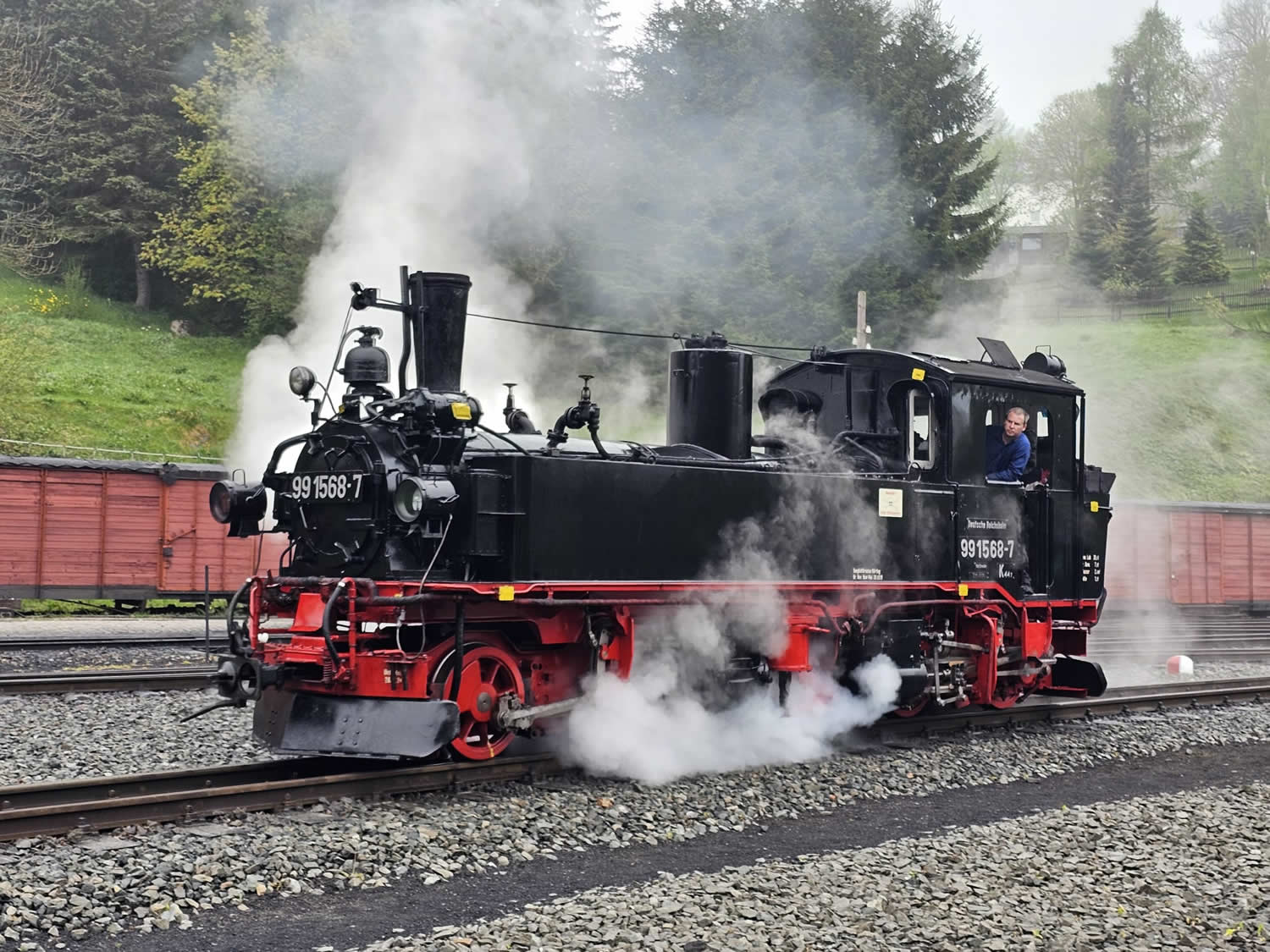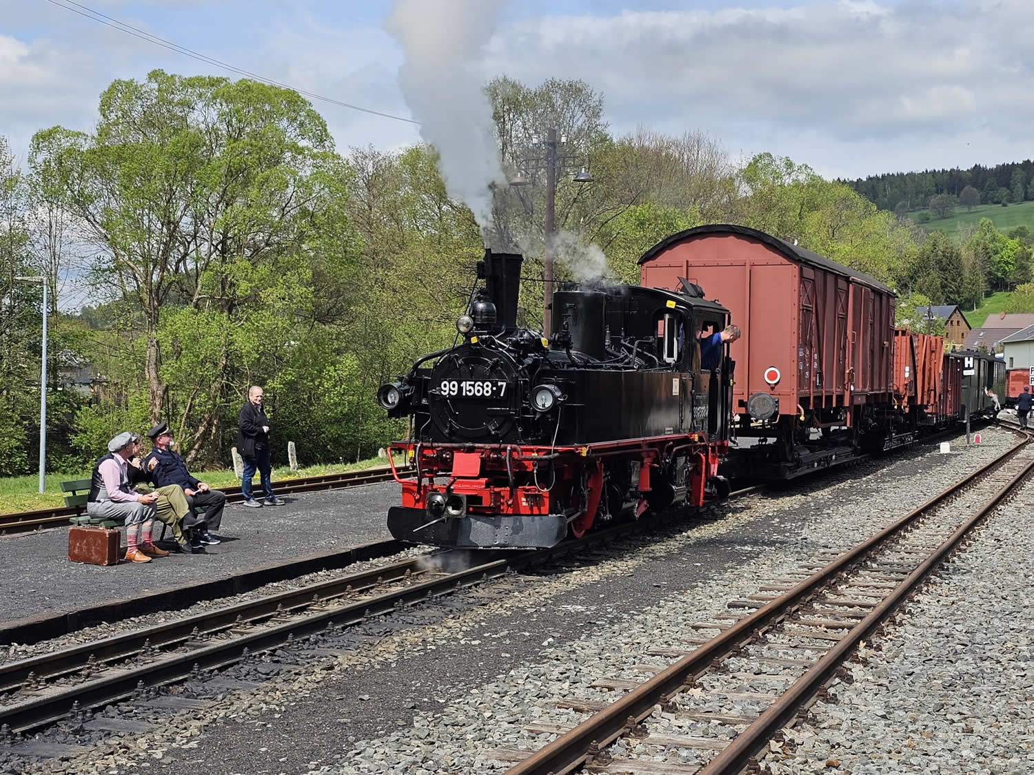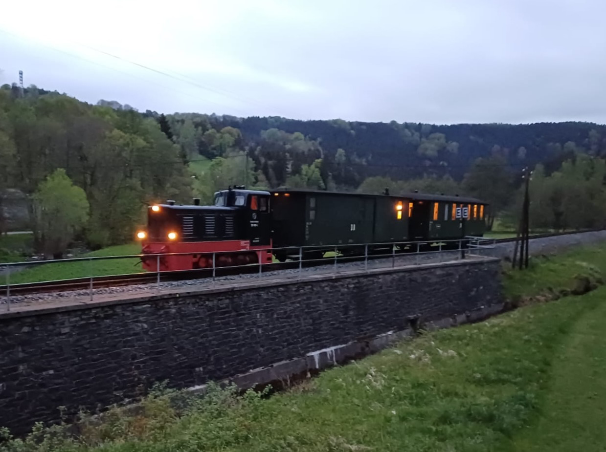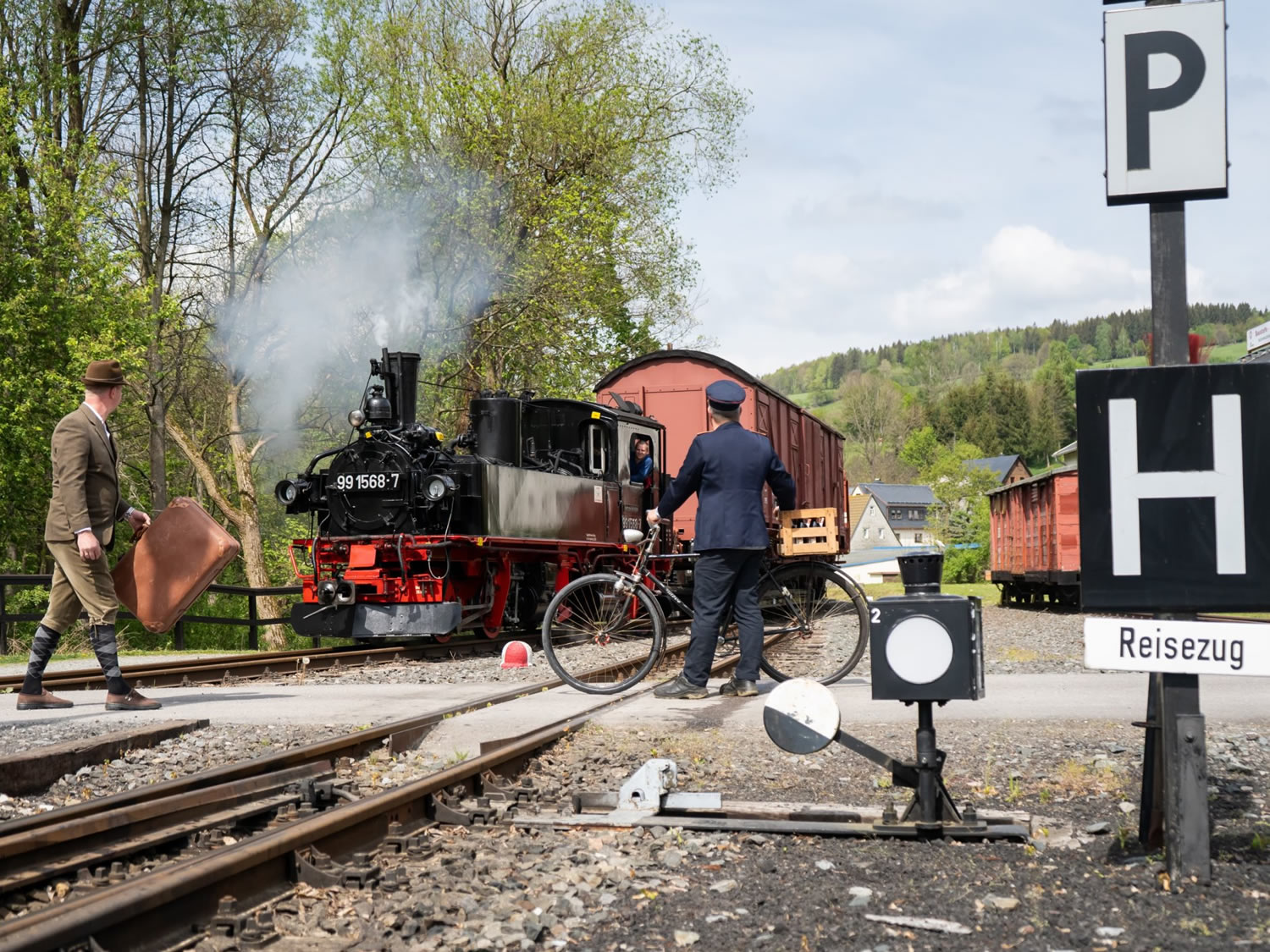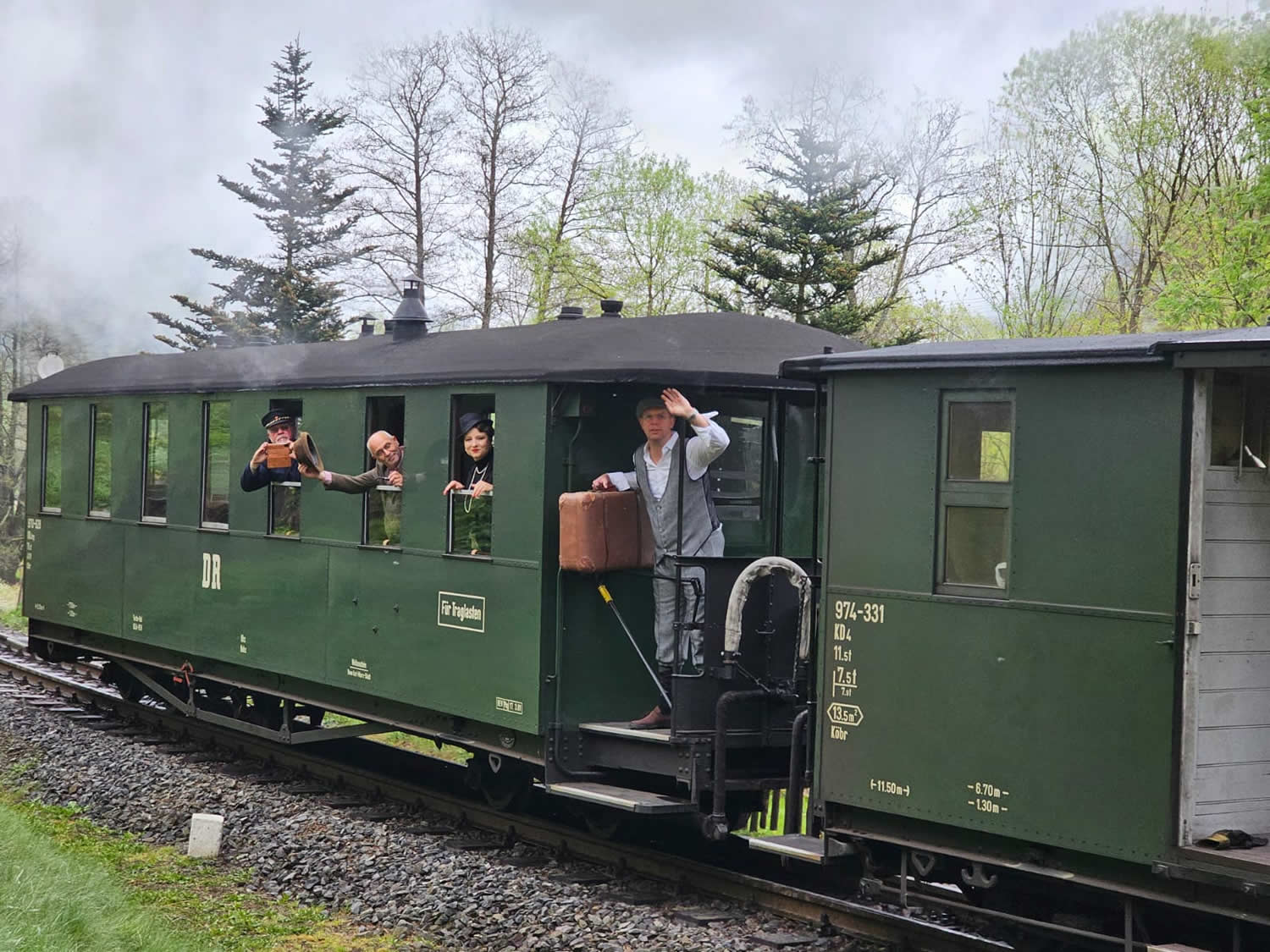 Am Freitag begann es mit der Zugfahrt von der Schlösselmühle zum Abendessen in den Forellenhof. Das Highlight war dann am Sonnabend die Sonderfahrt mit dem Güterzug mit Personenbeförderung (GmP) in unterschiedlichen Zusammenstellungen und vielen Rangiermanövern. Einige Vereinsmitglieder trugen extra aus diesem Anlass historische Bekleidung zum Erstellen von Fotoszenen.