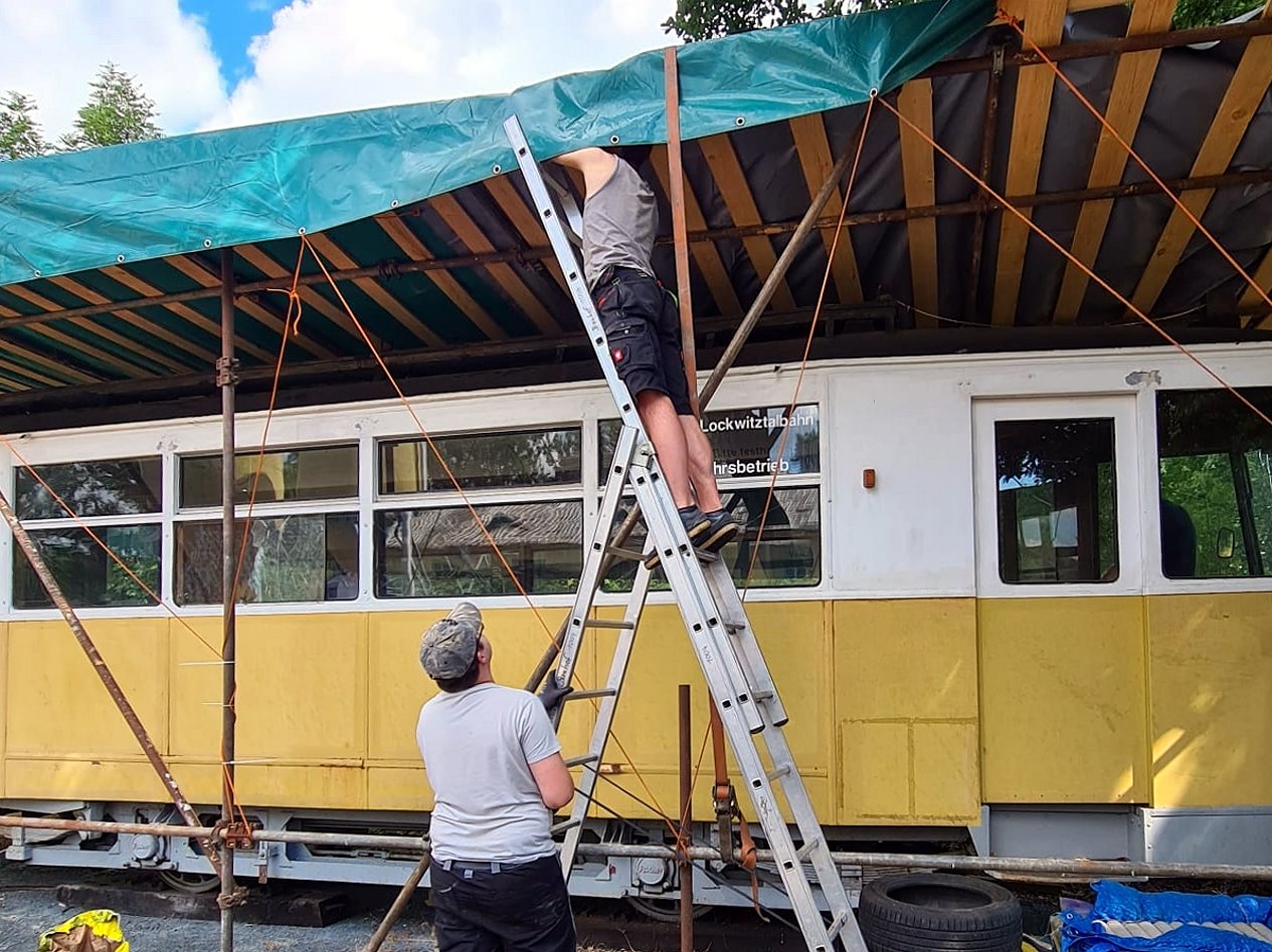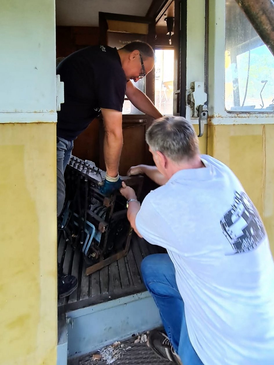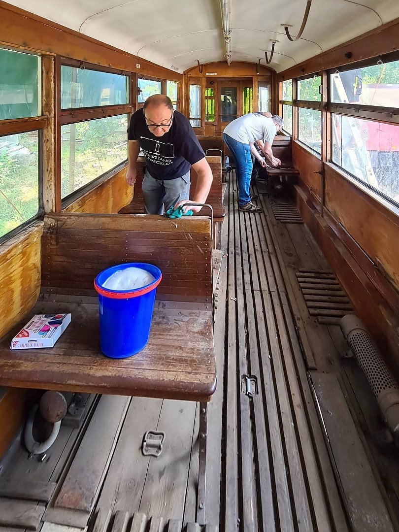 Am Sonnabend dem 2.7.2022 fand der erste Arbeitseinsatz an dem Kreischaer Lockwitztalbahn Triebwagen statt. Neben der Beräumung der Dachfläche und dem Nachspannen der Plane wurde der Innenraum gereinigt und beräumt. Auch drei Bänke wurden für die Restaurierung ausgebaut. Die Bürgerstiftung Kreischa "Wir sind Kreischa" und unser Bürgermeister waren natürlich auch anwesend. Gemeinsam haben wir das weitere Vorgehen besprochen. Und da gibt es erstmal viel Papier zu bearbeiten. Das Vorbereiten der Fördergeldanträge ist ein großes Stück Arbeit. Wir als MEC Kreischa unterstützen dabei. Besonders wertvoll ist dabei nach Kräften Auch die Reproduktion einer Technischen Zeichnung und ein Heimatdruck ist in Vorbereitung.