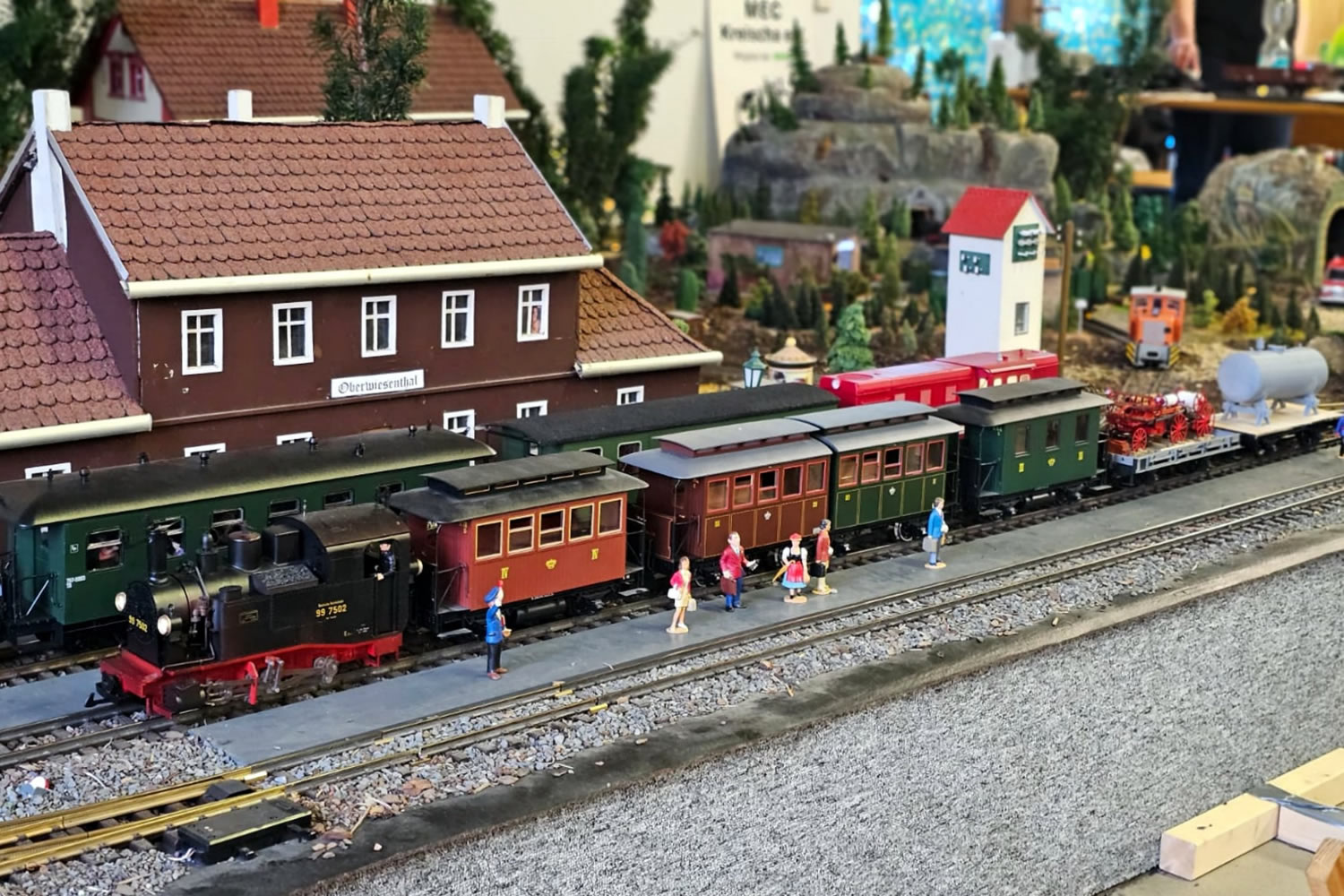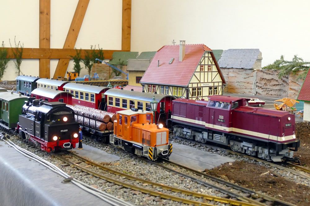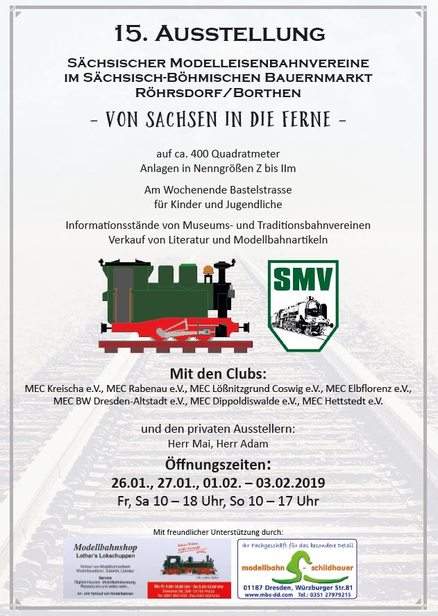"Von Sachsen in die Ferne" war das Thema der 15. Modellbahnausstellung im Sächsisch-Böhmischen Bauernmarkt Röhrsdorf, die wir zusammen mit mehreren befreundeten Modellbahnclubs (siehe Bild 1) durchführten. Entsprechend des Mottos der Ausstellung gab es auch mehrere Fahrzeuge und Motive aus fernen Gegenden zu sehen.