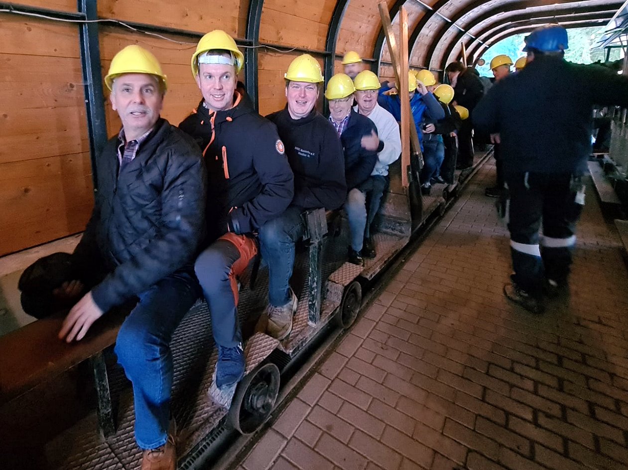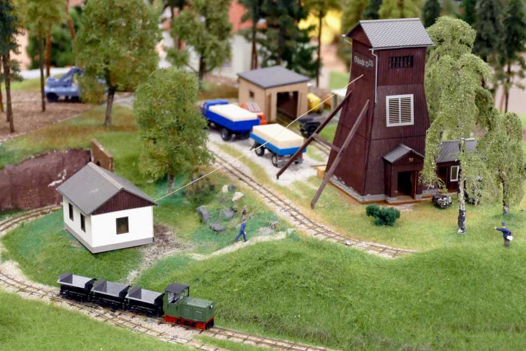 Das Schaubergwerk „Volle Rose“ bei Ilmenau stand am dritten Tag auf dem Programm. Das Bergwerk diente dem Abbau von Flussspat. Heute bietet sich die Möglichkeit, es mit einer Lorenbahn zu befahren und einen Eindruck von der damals harten Arbeit zu erhalten. Im Freigelände des Bergwerks existiert ein weit ausgebautes 600 mm-Netz der Lorenbahn (ca. 3,5 km) – welches von uns für eine Rundfahrt gern genutzt wurde. Weiterhin war eine beeindruckende Fahrzeugsammlung an betriebsbereiten Feldbahnlokomotiven und Wagen zu besichtigen.