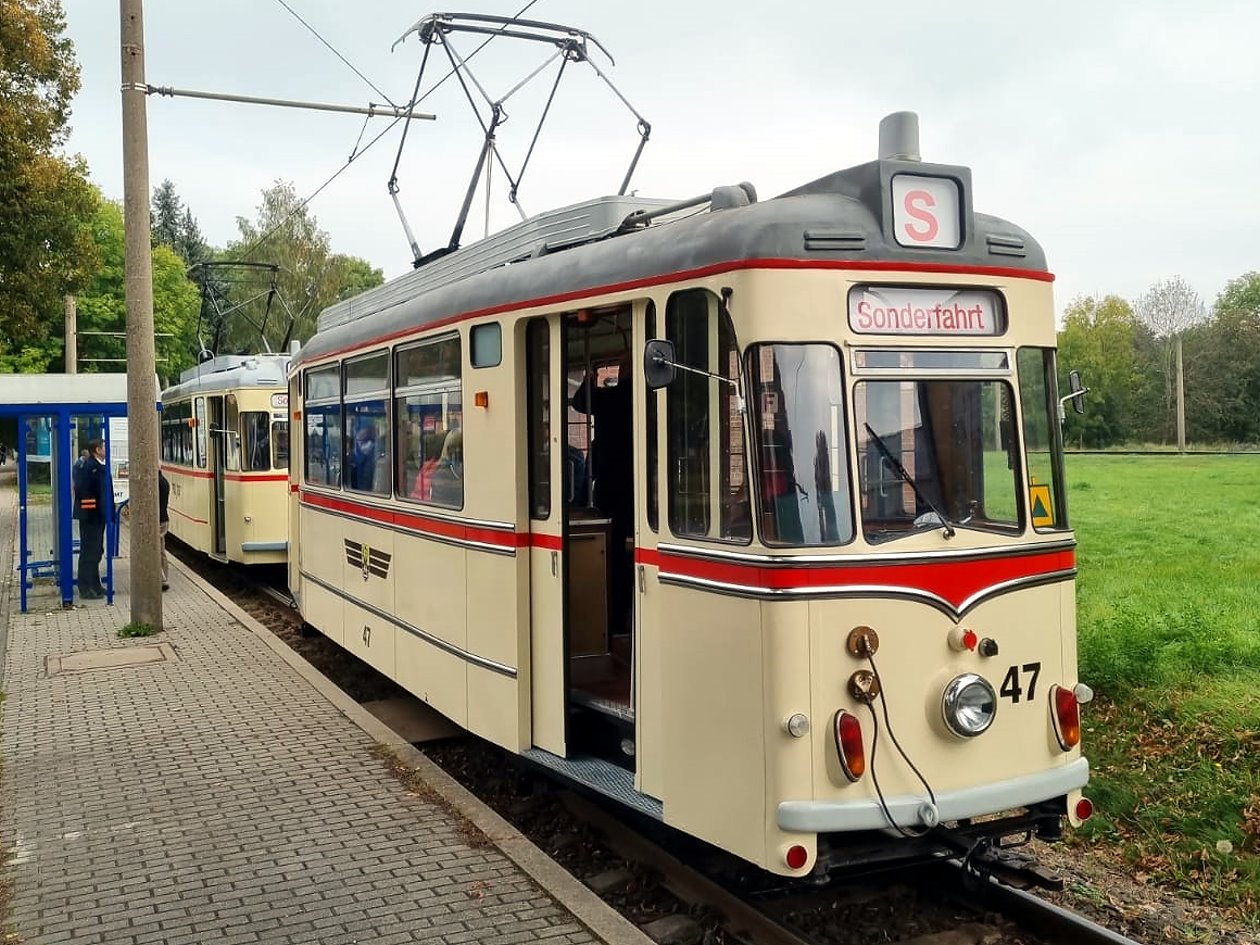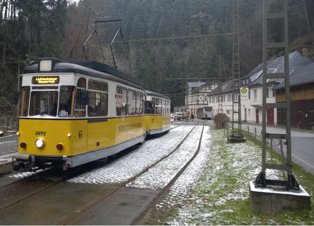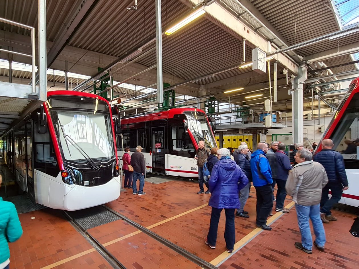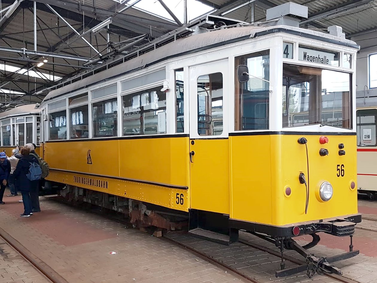 Am zweiten Tag unserer Reise besuchten wir die Thüringerwaldbahn, die ein ca. 22 km langes Streckennetz zwischen Gotha und Tabarz betreibt. Am Morgen besichtigten wir zunächst die Wagenhalle in Gotha – hier erfuhren wir Interessantes zur Geschichte und Gegenwart der 1929 eingeweihten Strecke. Besonders beeindruckend waren dabei natürlich die historischen Fahrzeuge. Am späten Vormittag begann unsere Sonderfahrt mit einer historischen Straßenbahn auf dem gesamten Streckennetz - natürlich mit mehreren Fotohalten!